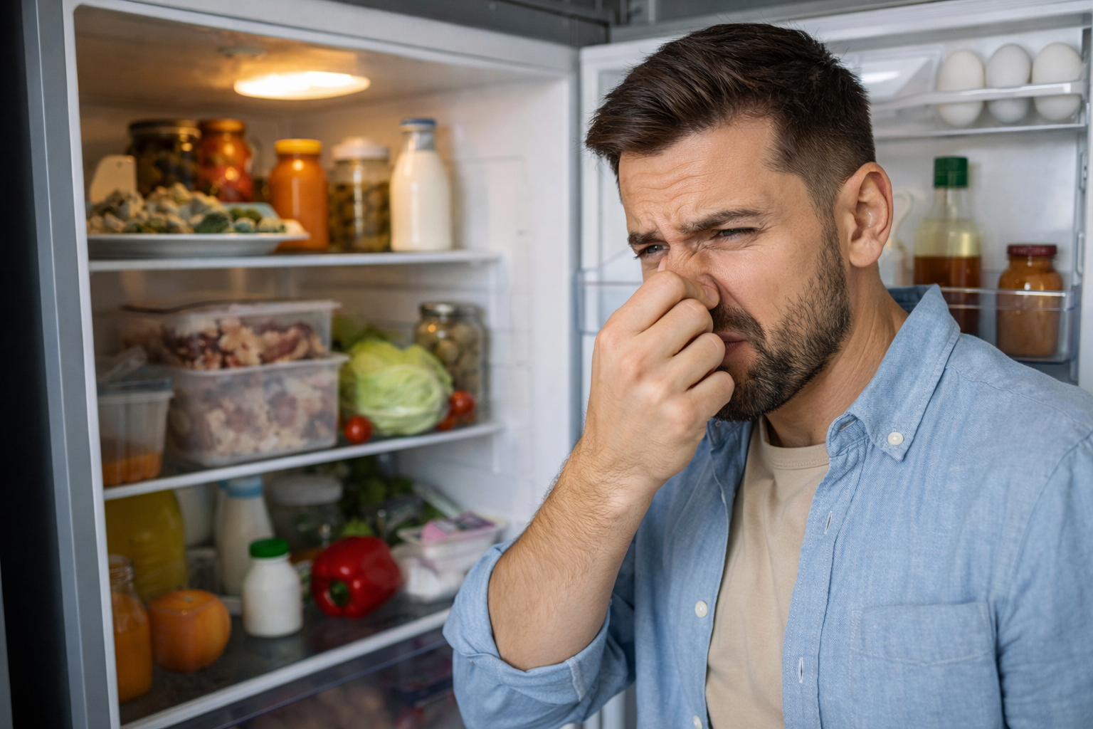 Что делать: проведите ревизию всего содержимого. Проверьте дальние углы, отодвиньте контейнеры, загляните в морозильную камеру. Все просроченное или подозрительное — немедленно выбросить.