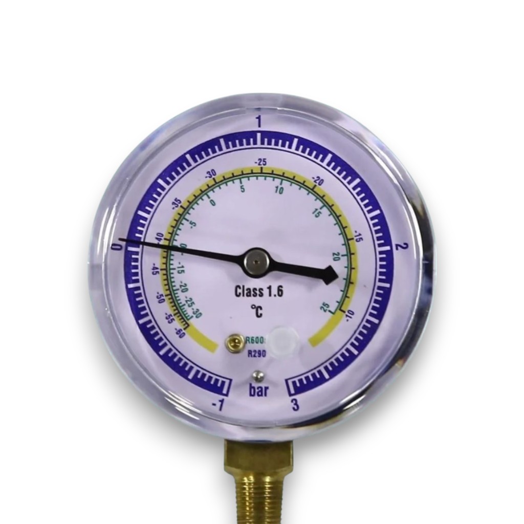 Манометр для хладагентов R290, R600 — измерительный прибор для контроля давления в холодильных системах. Используется при заправке, диагностике и обслуживании холодильного и климатического оборудования.