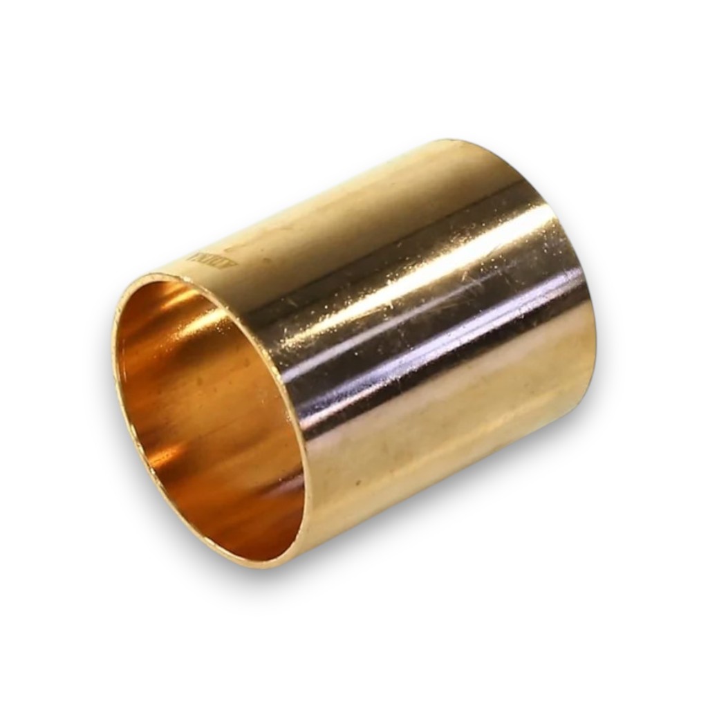 "Муфта соединительная для холодильных систем и трубопроводов диаметром 2 1/8 дюйма (54мм) без стопорного кольца. Модель FC 31015. Изготовлена из латуни или меди - сплавов, обладающих высокой коррозионной стойкостью, прочностью и хорошей обрабатываемостью. Предназначена для соединения медных труб одинакового диаметра 2 1/8"" в холодильных системах, системах кондиционирования, при монтаже трубопроводов хладагента. Конструкция без стопорного кольца означает упрощенное исполнение муфты. Соединение выполняется методом пайки твердым припоем (медно-фосфорным или серебряным). Муфта обеспечивает герметичное и долговечное соединение труб под давлением. Диаметр 2 1/8"" используется в крупных холодильных системах, промышленных кондиционерах. Применяется в профессиональном холодильном оборудовании.