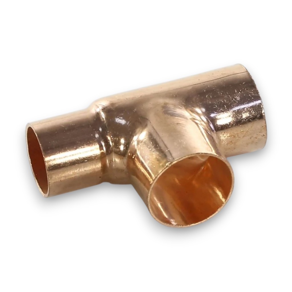 Тройник диаметром 34.9мм 1 3/8 x 1 1/8 x 1 3/8, применяется для соединения медных труб, систем холодоснабжения и кондиционирования. Медь имеет антикоррозионные свойства, долговечна и непроницаема для газов, что имеет определяющее значение для герметичных систем. Отличная пластичность меди упрощает процедуру монтажа, медь легко поддается механической обработке, пайке и гибке. Размер тройника: 1 3/8 x 1 1/8 x 1 3/8.