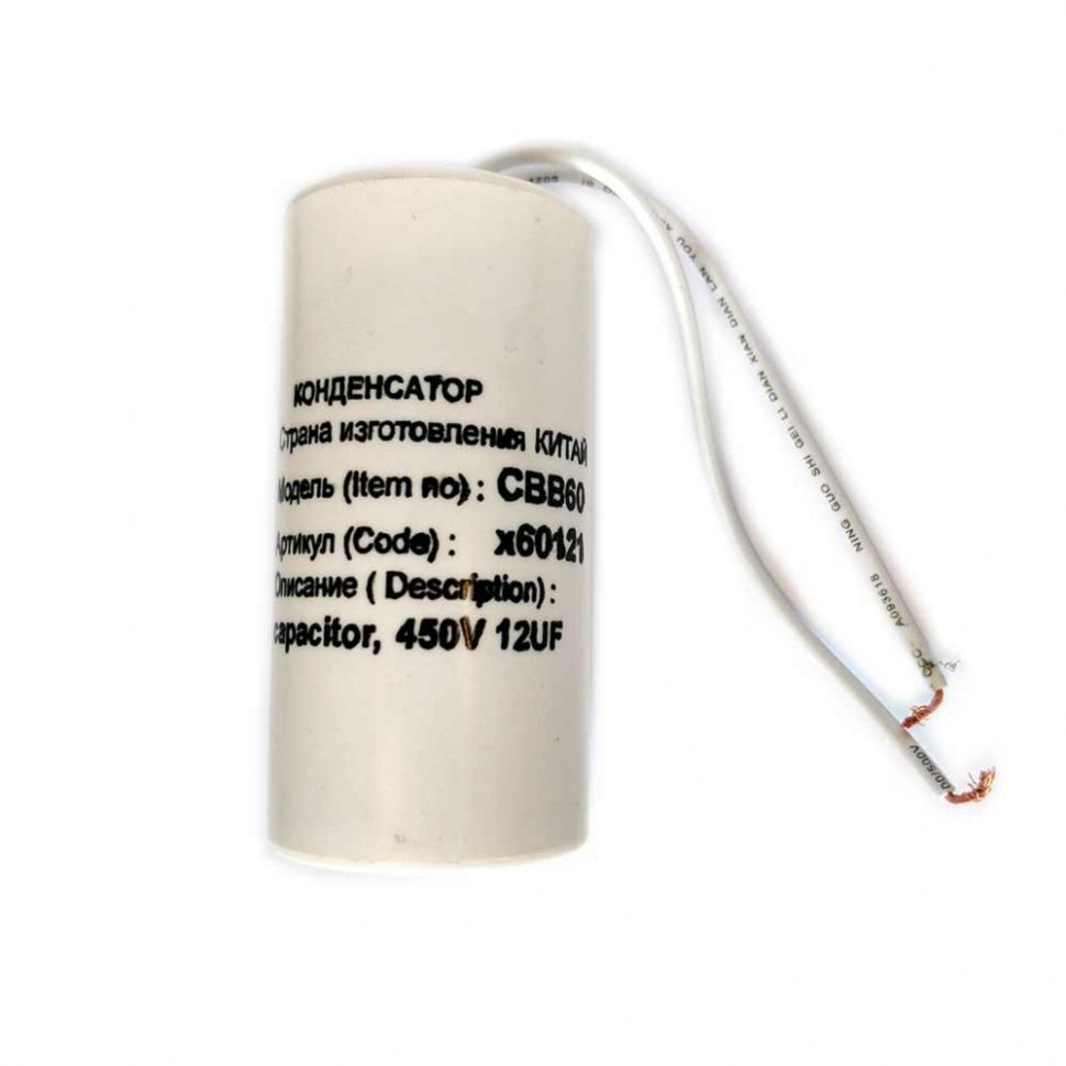 Пусковой конденсатор СВВ60 12 мкФ 450В с проводом применяется для запуска и работы однофазных электродвигателей, вентиляторов, насосов и бытовой техники.