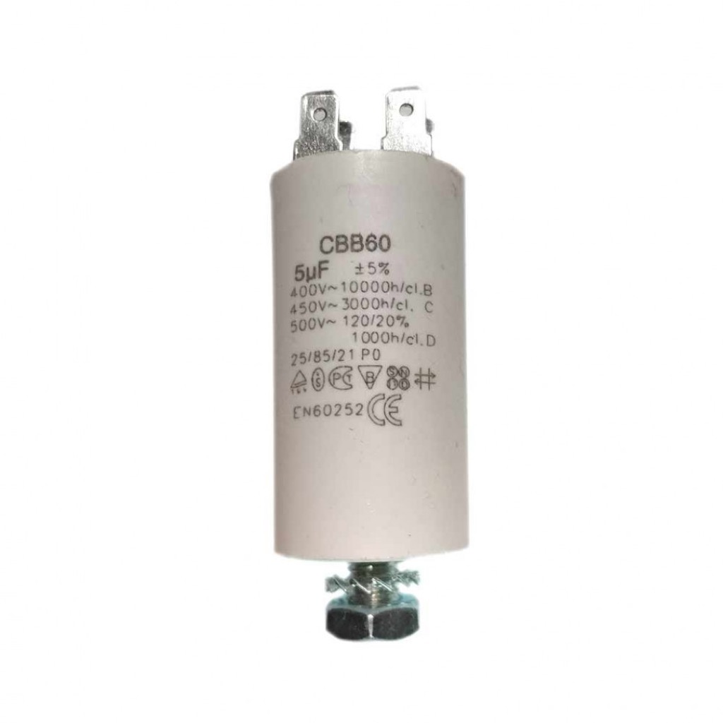 Пусковой конденсатор СВВ60 5 мкФ 450В без провода применяется для запуска и работы однофазных электродвигателей, вентиляторов, насосов и бытовой техники.