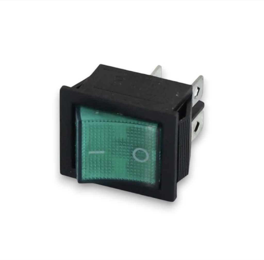 Кнопка 4 контактная 15/20А зелёная. Необходимая запчасть, которая предназначена включать и отключать режимы холодильного оборудования и других бытовых приборов.