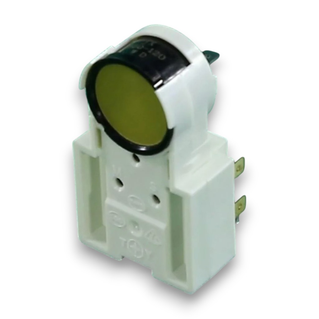 Реле Jiaxipera TT1117GZ - устройство, сочетающее функции включения пусковой обмотки и токовой защиты двигателя. Когда температура внутри камеры падает ниже заданной, то контакты терморегулятора замыкаются. В этот момент реле получает сигнал на запуск мотора-компрессора. Реле защищает мотор от перегрузок и перегревания.