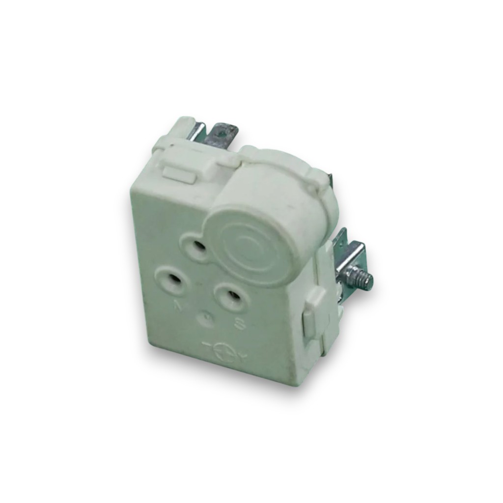 Реле пускозащитное - устройство, сочетающее функции включения пусковой обмотки и токовой защиты двигателя. Когда температура внутри камеры падает ниже заданной, то контакты терморегулятора замыкаются. В этот момент реле получает сигнал на запуск мотора-компрессора. Реле защищает мотор от перегрузок и перегревания.
