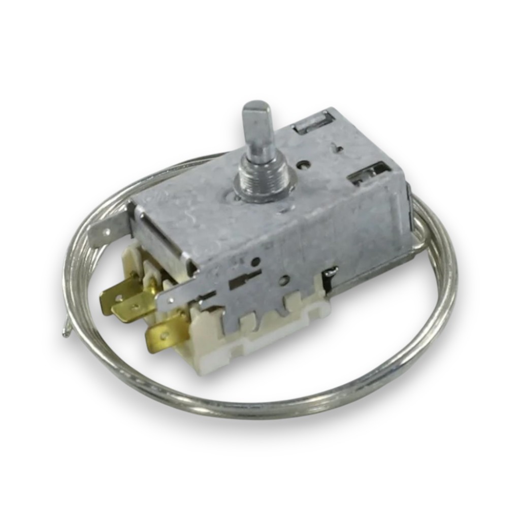 Термостат (терморегулятор) для холодильников модель К-54 1,3 производства Ranco (Италия) с диапазоном температур от -27,4°C до -20,3°C. Артикулы: 26243004, L2061. Термостат предназначен для автоматического поддержания заданной температуры в морозильной камере холодильника. Конструкция включает корпус с контактной группой, капиллярную трубку (сильфон) длиной 1,3 метра с датчиком температуры, заполненную фреоном или специальным газом. Принцип работы основан на изменении давления в капиллярной системе при изменении температуры. При достижении нижнего порога температуры термостат размыкает контакты, отключая компрессор. При повышении температуры контакты замыкаются, включая компрессор. Диапазон от -27,4°C до -20,3°C характерен для морозильных камер. Универсальная конструкция позволяет использовать термостат в холодильниках и морозильниках различных производителей. Производитель Ranco - итальянская компания, ведущий производитель терморегулирующей аппаратуры.