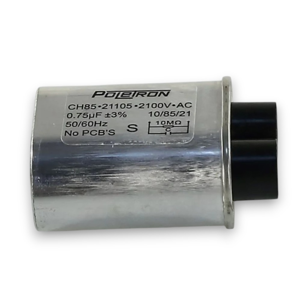 Конденсатор для микроволновки (СВЧ-печи) 2100W, 0.75мкФ, 2 контакта, цилиндрический, пластик SVCH042