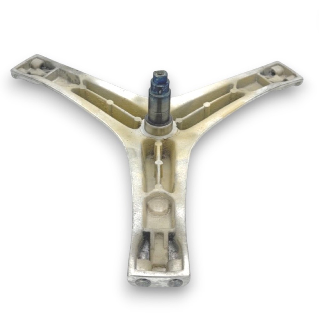 Крестовина передаёт вращение от двигателя к барабану и обеспечивает равномерное распределение нагрузки при отжиме. При замене крестовины рекомендуем одновременно заменить подшипники и сальник.